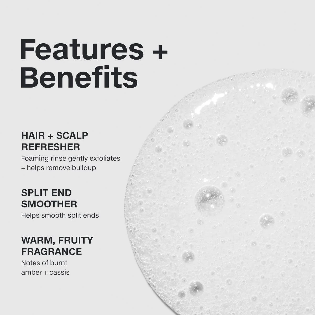 Ladestunud ebapuhtusi ja viimistlusvahendite jääke eemaldav ja läiget lisav fluid. Värskendab juukseid ja peanahka. Vahutav õunasiidri äädikas ja salitsüülhape koorivad õrnalt ning aitavad eemaldada juustesse ladestunud jäägid. Lisaks aitab toode siluda lõhenenud juukseotsi. Sobib värvitud juustele. Parabeeni- ja gluteenivaba, vegan