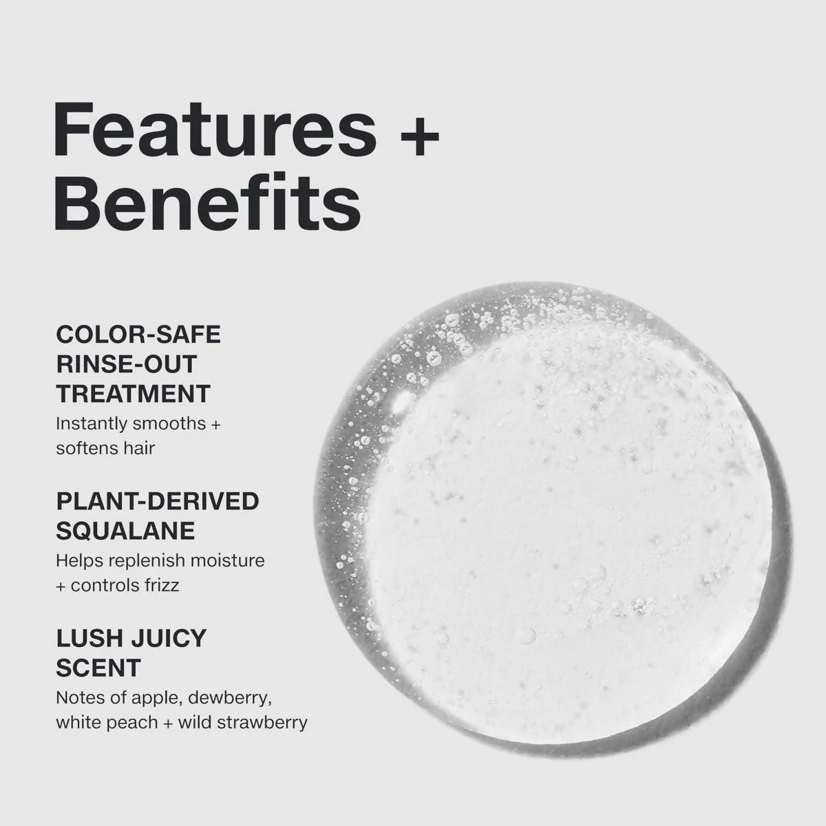 Koheselt siluv ja pehmendav fluid kõikidele juuksetüüpidele. Muudab juuksed ühe loputuskorraga siledamaks. Silub kutiikuli ja annab imelise läike. Sisaldab taimset skvalaani, mis taastab niiskustasakaalu ja taltsutab kahusust. Sobib värvitud juustele. Parabeeni- ja gluteenivaba ning vegan.