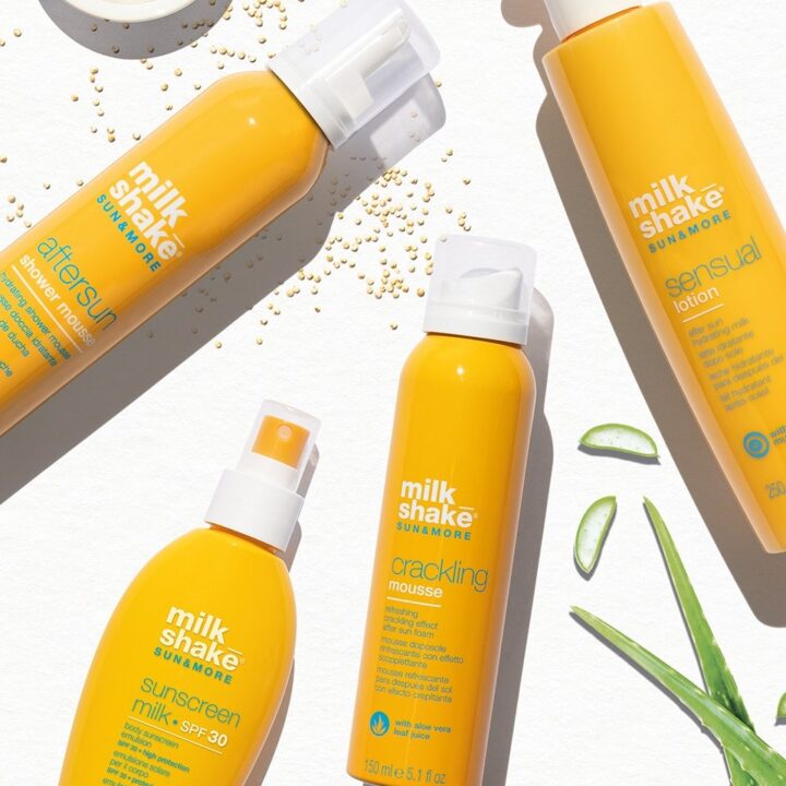 milk_shake sun&more sari pakub tõhusat kaitset ja hooldust juustele ja kehale päikese käes. Spetsiaalsed valemid aitavad kaitsta juukseid UV-kiirguse, soolase vee ja kloori eest, säilitades nende niiskuse ja sära. Tooted niisutavad, toidavad ja taastavad juukseid ning nahka, jättes need pehmeks ja hooldatuks ka pärast päikese käes viibimist.